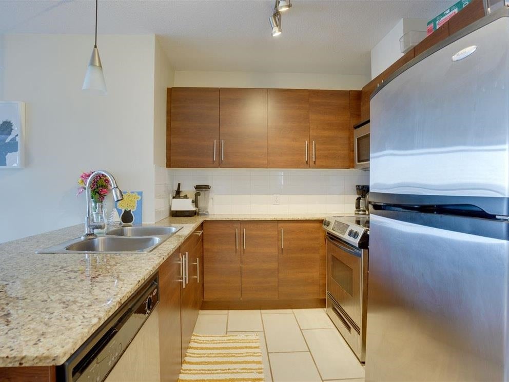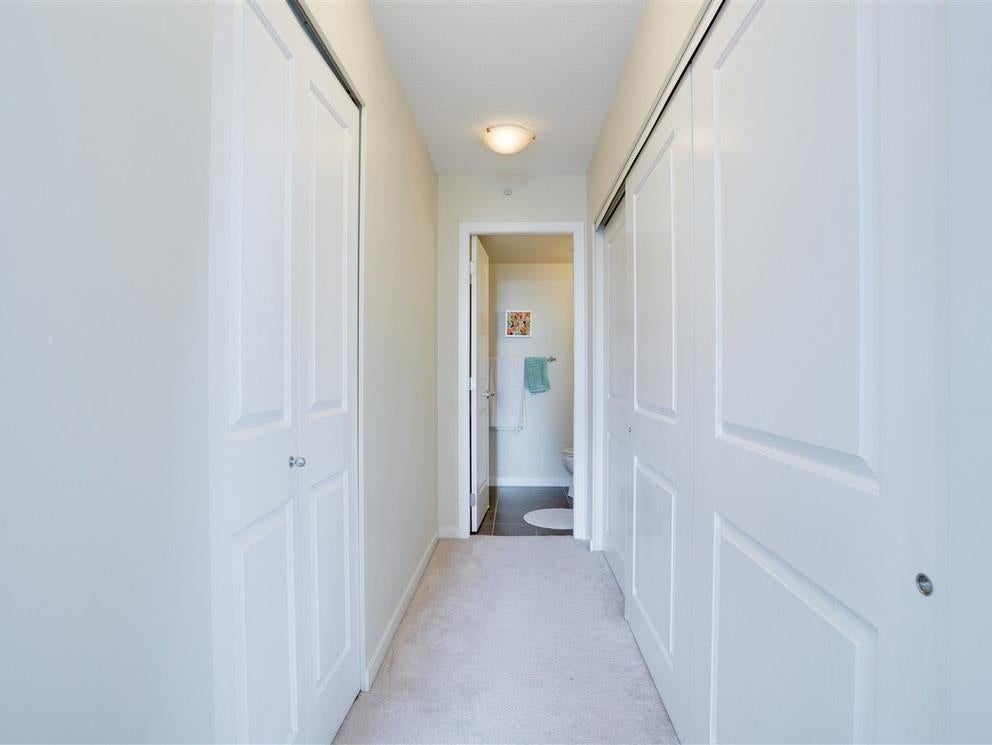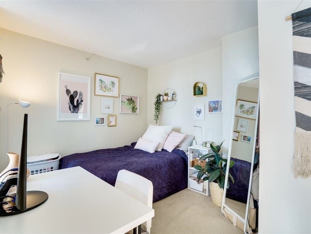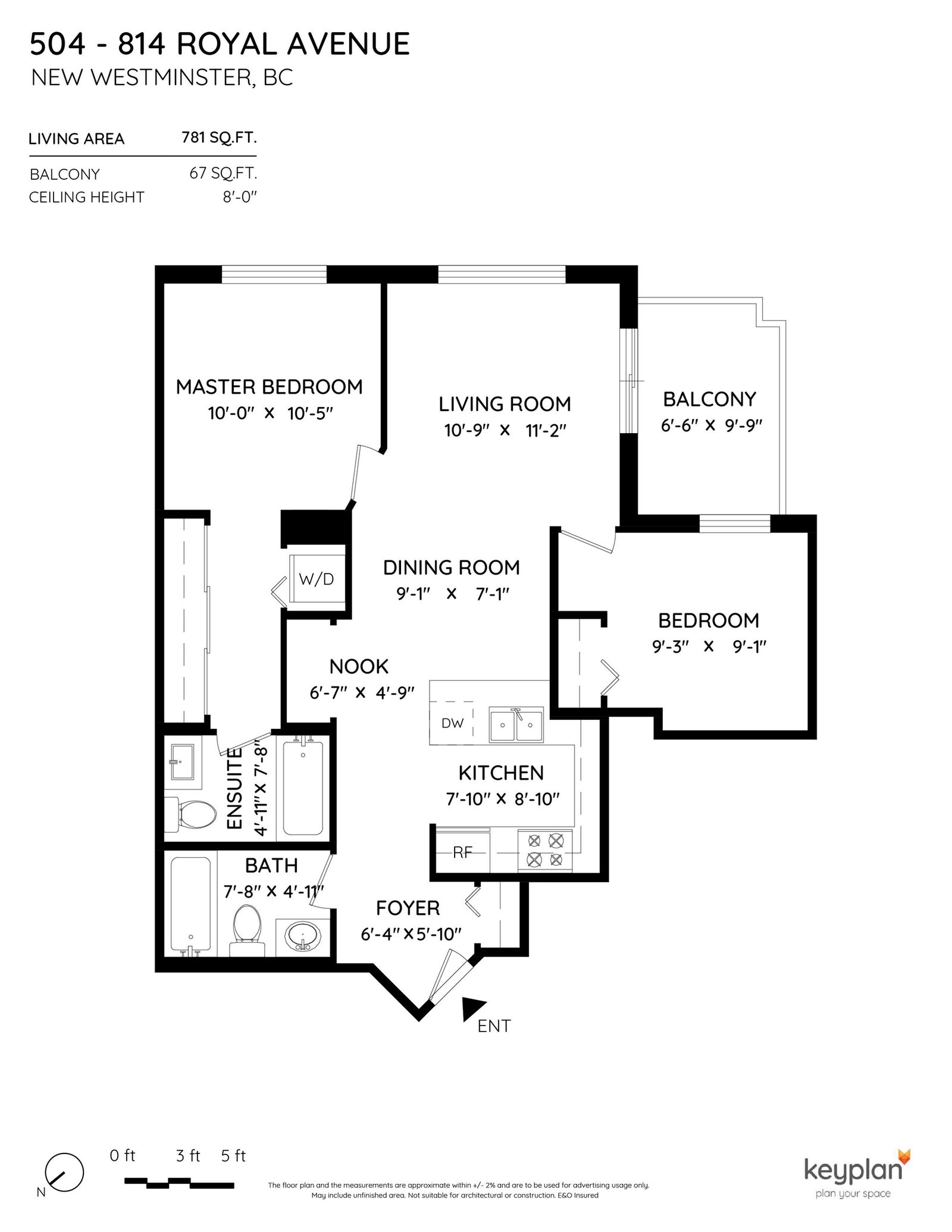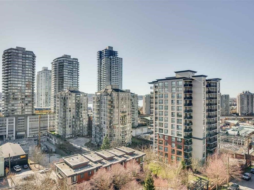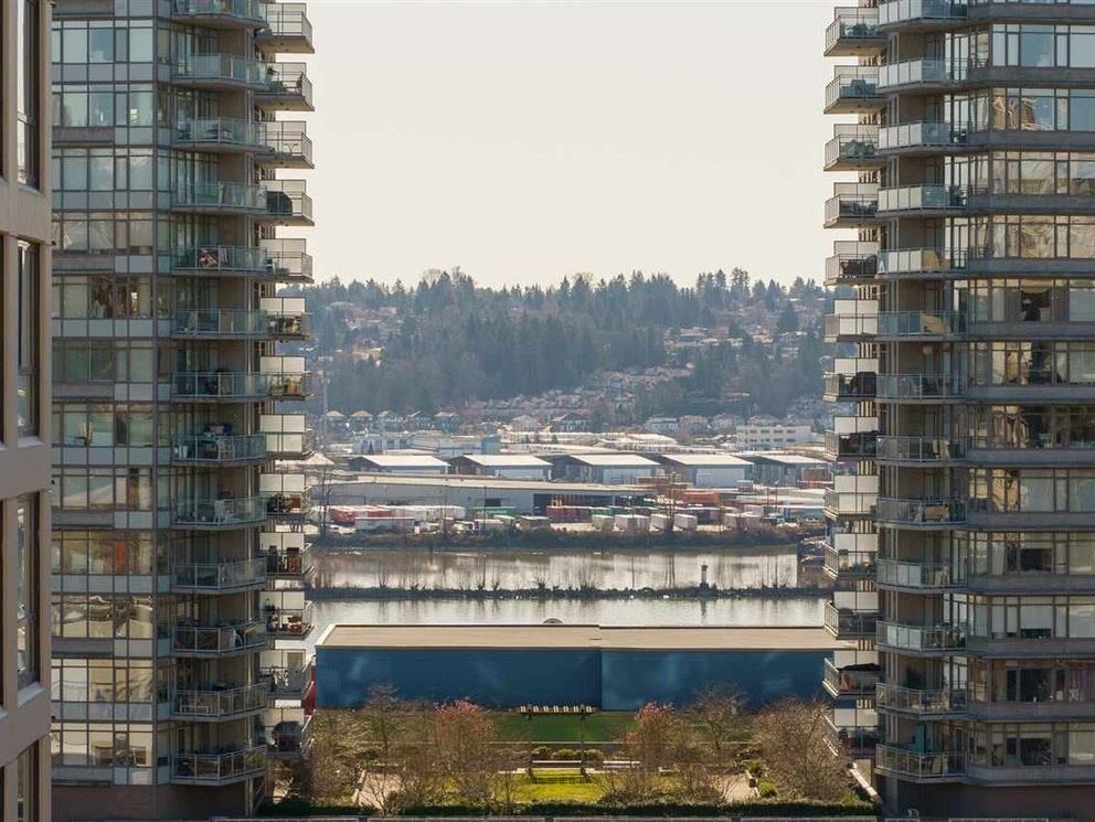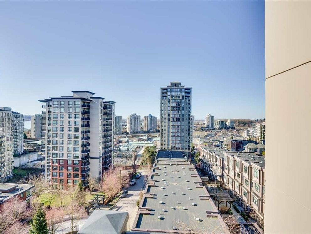 Welcome to News North! This 2 bedroom & 2 bathroom corner home offers ample natural light and 781 sqft of interior living space. An efficient open floor plan that feels much larger with bedrooms on opposite sides allowing for maximum privacy. Other notable features include concrete construction, beautiful views, functional kitchen with s/s appliances and granite countertops, office nook, in-suite laundry, located on the quiet side of the building, plus an oversized covered balcony that is perfect for entertaining and BBQing. Centrally located and very walkable close to all the amenities that New West's downtown core has to offer including Skytrain. 1 parking & 1 storage. Pet friendly & rentals allowed.