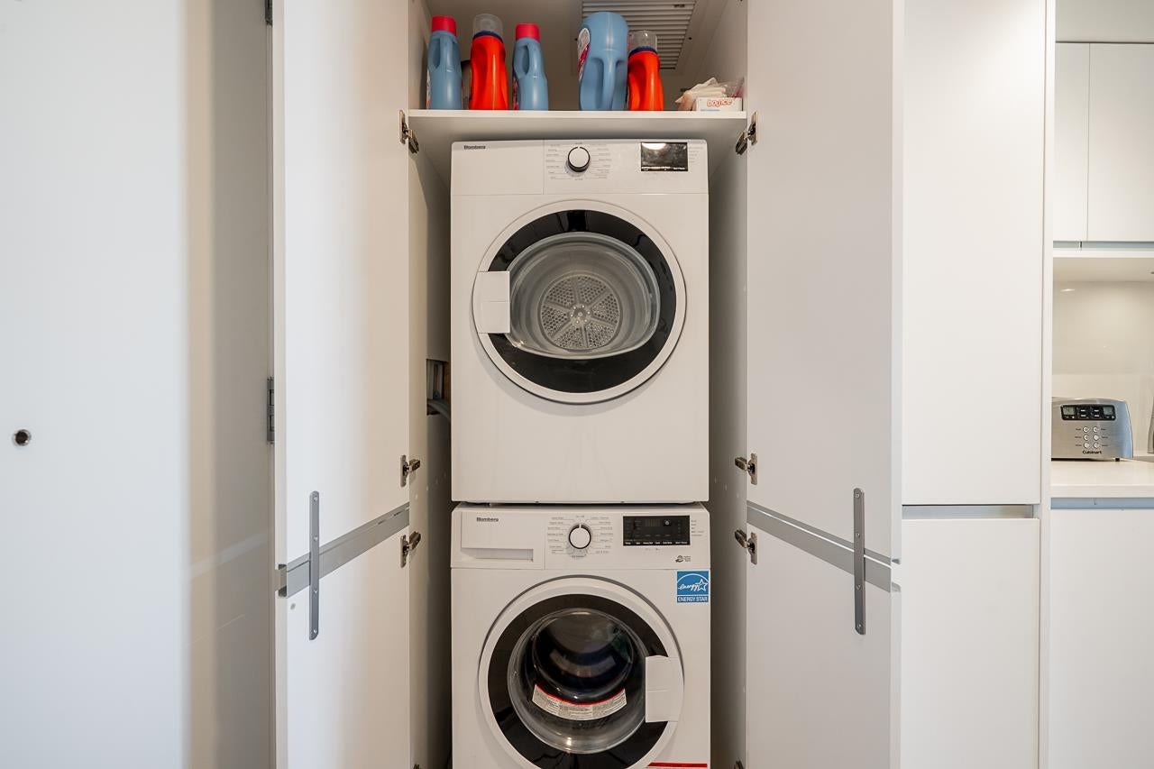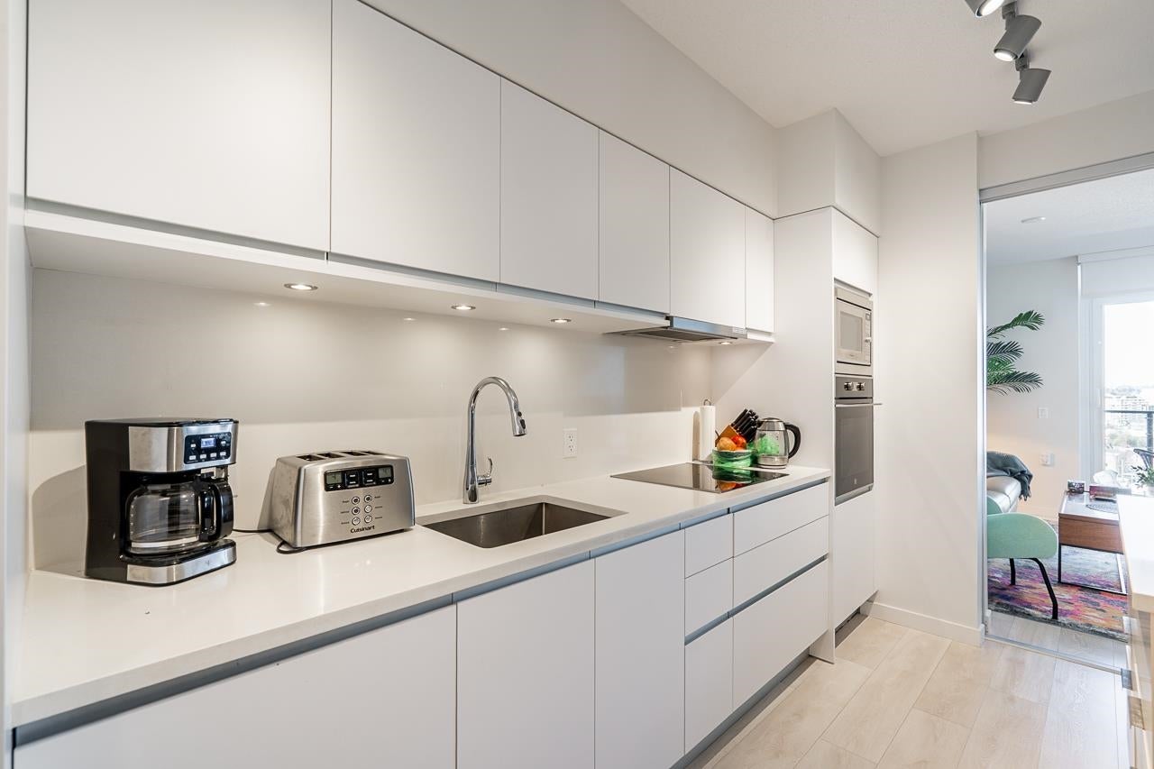 Welcome to Second + Main. Experience modern Vancouver living in this beautifully designed 1 bed + den and 2 bath home offering 705 sqft of efficient living space. West facing unit on quiet side of building featuring A/C, wide plank flooring, custom high-end European cabinetry, stone countertops, premium appliances and in-suite laundry. Located in one of Vancouver’s most convenient areas, just minutes to Downtown, SkyTrain, False Creek, shops and many top dining options. Residents enjoy exceptional amenities including a fitness centre, rooftop terrace with panoramic views and lounge, BBQ areas, urban gardens and a party room with full kitchen. 2 Parking stalls included. Airbnb allowed and pet-friendly, offering ultimate flexibility and lifestyle appeal. Open House: Sat April 25, 2-4pm.